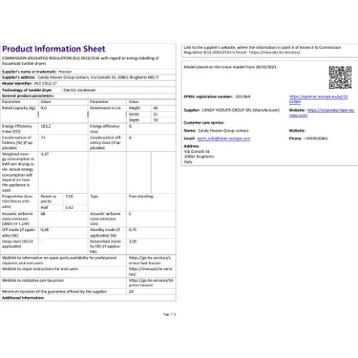 Hoover HLE C9LG-17 Yoğuşturmalı Kurutma Makinesi